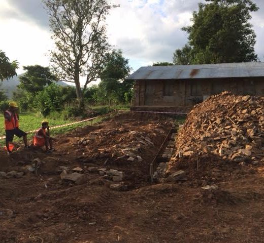 Ensimmäiseksi kävimme vierailulla Navajyotin peruskoululla tai tarkemmin sanottuna väliaikaiskoulun rakennustyömaalla. Varsinainen koulurakennus vaurioitui viimevuotisessa maanjäristyksessä niin pahoin, että tiloja ei saisi enää käyttää opetukseen ennen kuin ne ovat perusteellisesti korjattu. Koulu ja opetus tosin jatkuu vaurioituneissakin koulurakennuksissa ennen kuin tilalle saadaan väliaikaiskouluja tai varsinaiset koulurakennukset peruskorjattua. FCA Nepal rakennuttaa mm. Navajyotiin väliaikaiskoulurakennusta, jotta opetus ja oppiminen voisivat jatkua turvallisessa ympäristössä. Väliaikaiskoulurakennuksen olisi tarkoitus olla toimiva ja käytössä kolmesta viiteen vuoteen, kunhan rakennusta muistetaan huoltaa säännöllisesti. Tämän aikajakson jälkeen oppilaiden olisi tarkoitus palata korjattuun koulurakennukseensa ja väliaikaiskoulua voitaisiin käyttää esimerkiksi säilytystilana. FCA Nepal tarjoaa myös näille alueille käymälöitä ja puhdasta vettä.