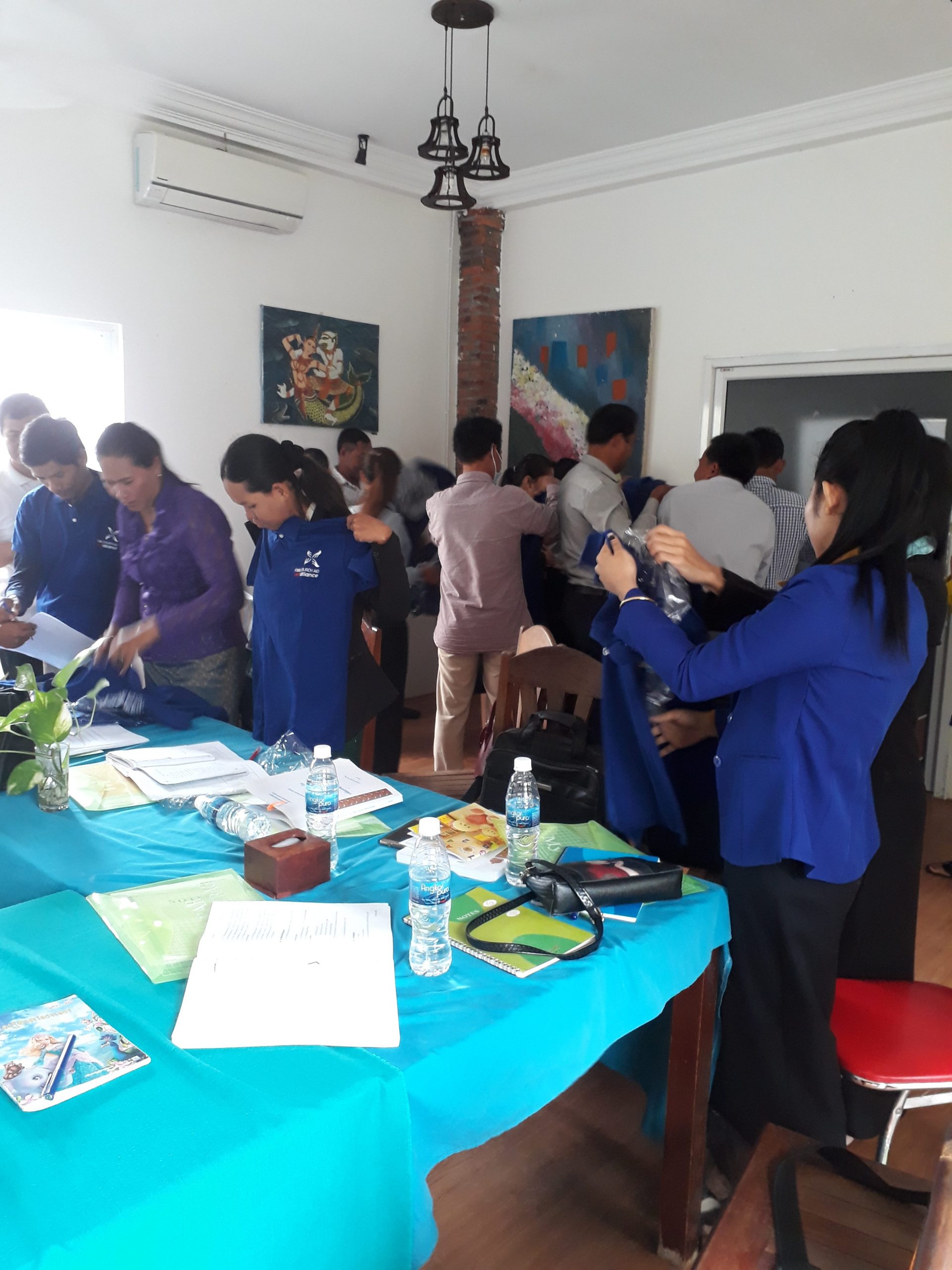 Battambangissa valmistui 29 uutta opinto-ohjaajaa heinäkuussa. Marraskuun alkupäivinä he osallistuivat kahden päivän jatkokoulutukseen, jossa syvennettiin jo opittuja taitoja. Koulutuksen aluksi he saivat työpaidat, jotka tuottivat suurta iloa.